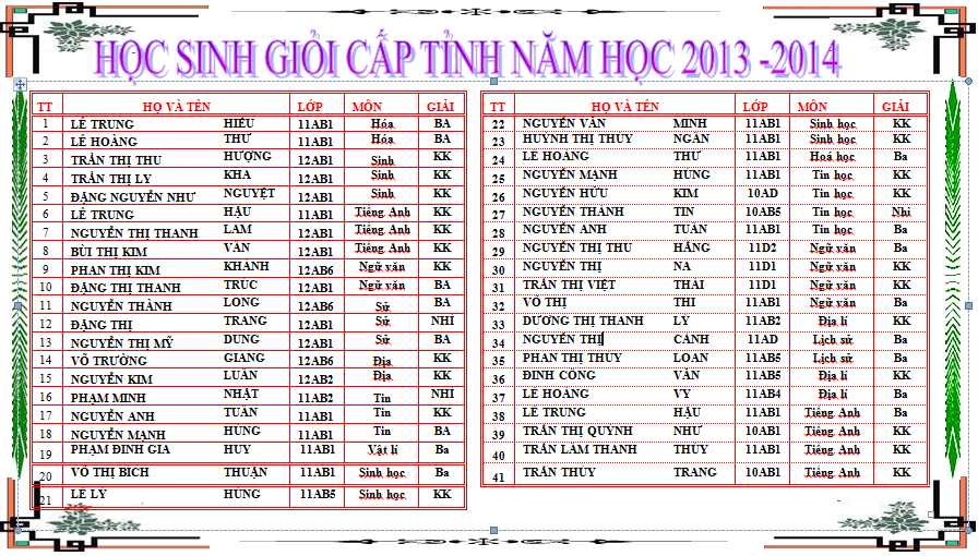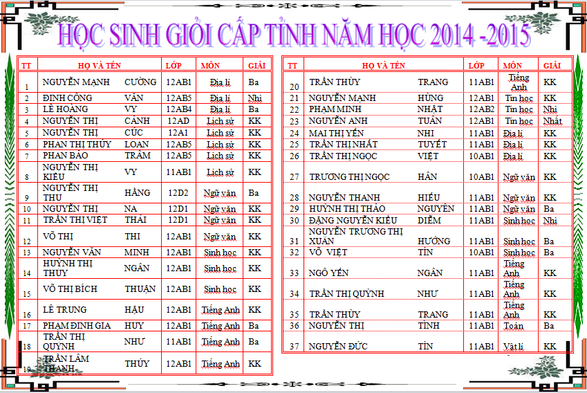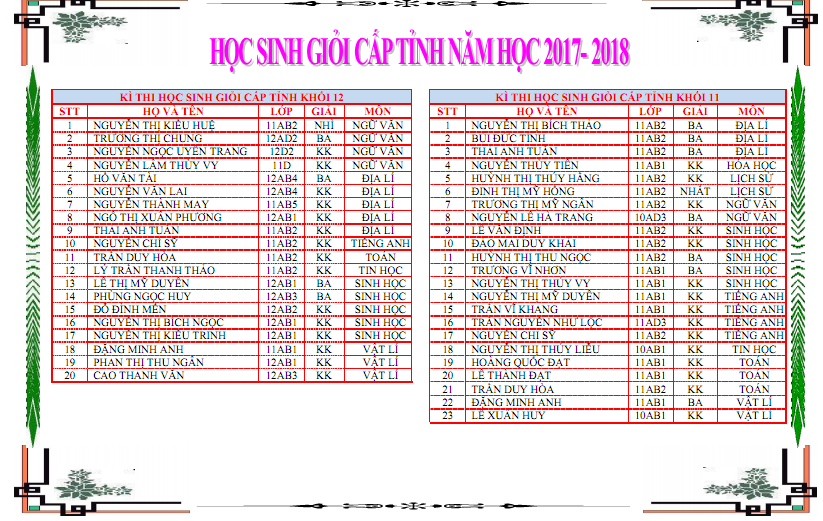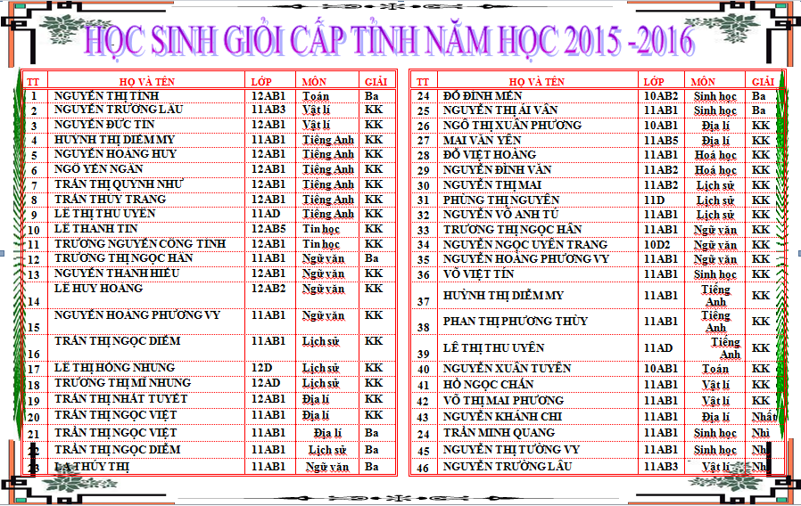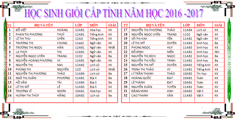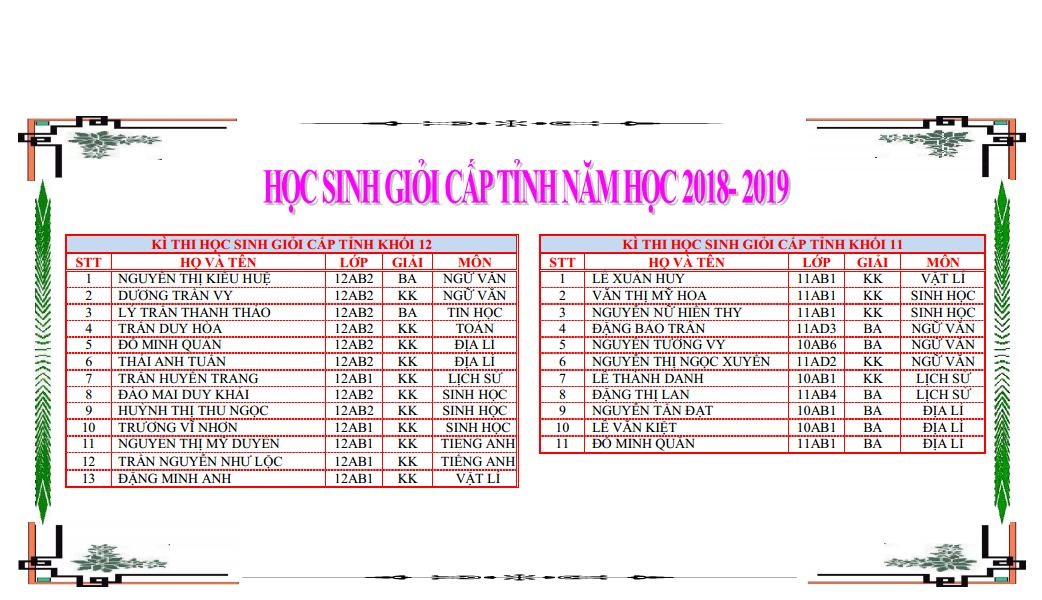 THÀNH TÍCH HỌC SINH GIỎI CẤP TỈNH