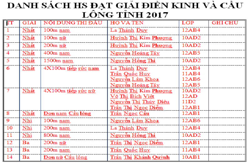 Đội tuyển học sinh của trường THPT Nguyễn Trân năm nay có 20 vận động viên tham gia thi đấu ở 02 nội dung là điền kinh và cầu lông. Sau 05 ngày thi đấu nhiệt tình, sôi nổi, tự tin, trung thực và đúng điều lệ, đội tuyển của chúng ta đã đạt được thành tích rất đáng khâm phục, đạt 08 huy chương vàng, 03 huy chương bạc, 03 huy chương đồng, đạt giải Nhất toàn đoàn điền kinh khối THPT. Ấn tượng nhất là em Huỳnh Thị Kim Phượng lớp 10AD2 đã đạt 03 HCV, em La Thành Duy lớp 12AB4 đạt 02 HCV, 1 HCB.