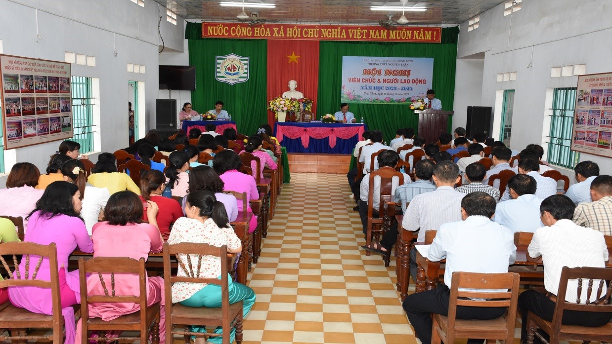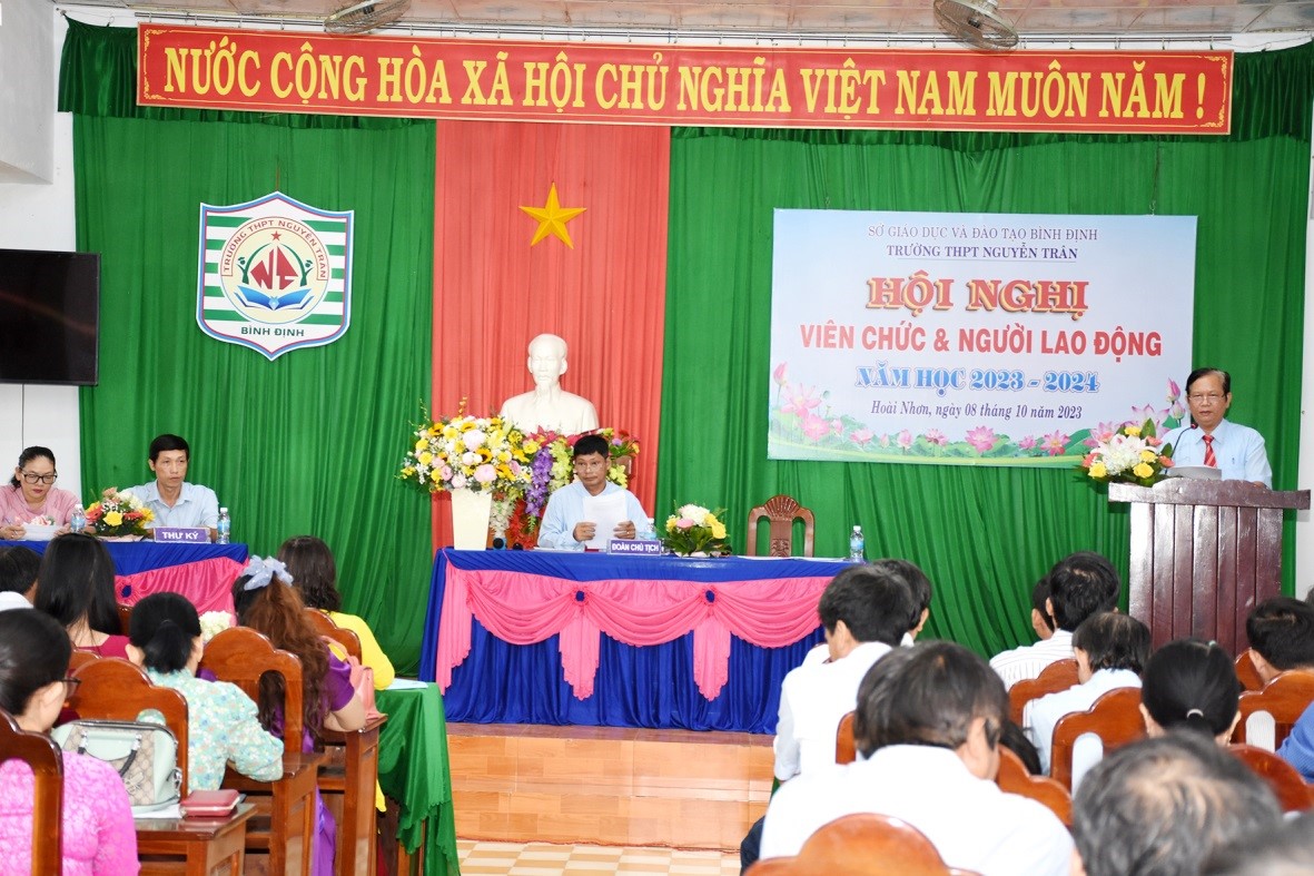 Nhằm đánh giá kết quả thực hiện Nghị quyết Hội nghị viên chức và người lao động năm học 2022 – 2023 và đề ra phương hướng, nhiệm vụ cho năm học 2023-2024; sáng ngày 08 tháng 10 năm 2023, trường THPT Nguyễn Trân long trọng tổ chức Hội nghị viên chức và người lao động năm học 2023 – 2024. Tham dự Hội nghị có 65 cán bộ, giáo viên, nhân viên và người lao động của nhà trường.