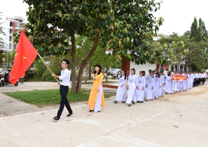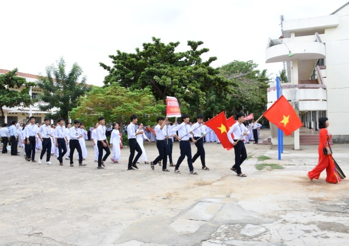 Mở đầu chương trình khai giảng là Lễ đón học sinh lớp 10 với 402 học sinh – một truyền thống hết sức có ý nghĩa của trường trong nhiều năm qua.