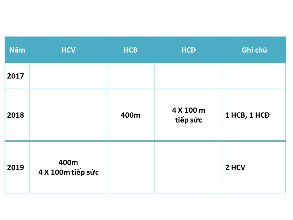 Trong hai năm học em đã đóng góp cho trường 2 HCV, 1 HCB và 1HCĐ. Ở Đại hội Thể dục thể thao tỉnh Bình Định năm 2018 em đóng góp 1 HCB 400m và 1 HCV 4 X 100m. Hi vọng với sự nỗ lực đó, em sẽ là vận động viên nòng cốt cho năm học sau của trường THPT Nguyễn Trân.