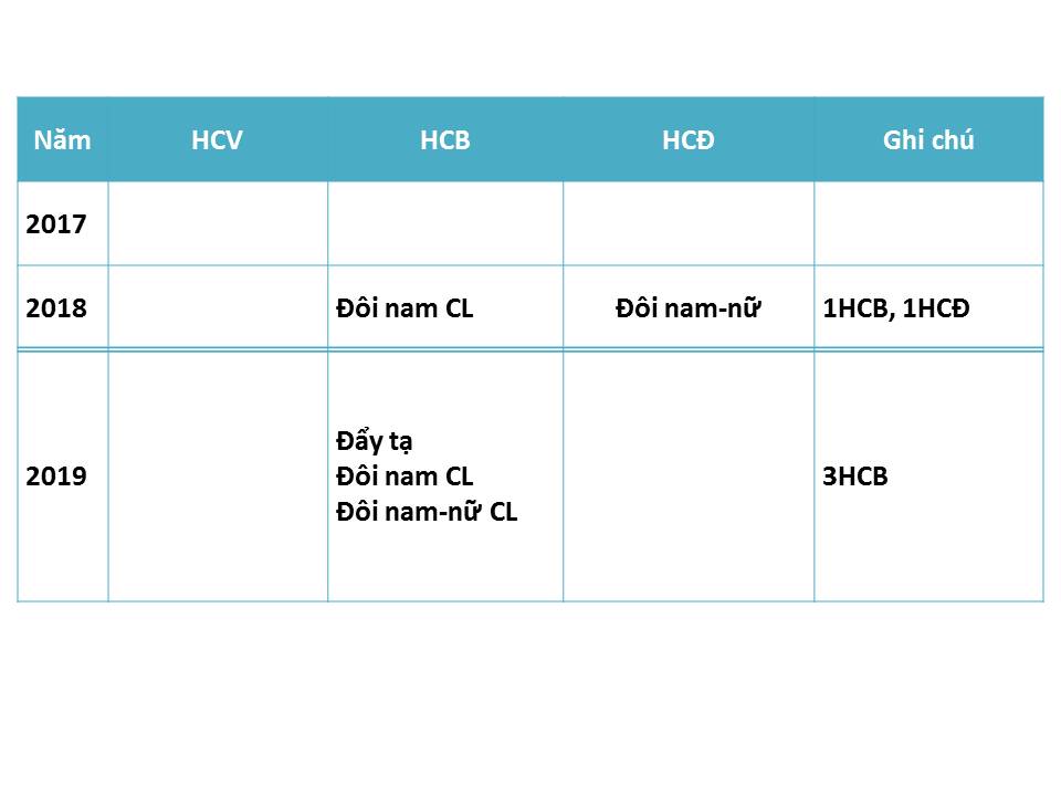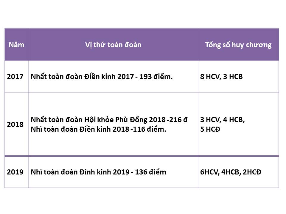 Trong đó năm 2018 và 2019 có sự tham gia của học sinh năng khiếu Thể dục Thể thao tỉnh Bình Định.