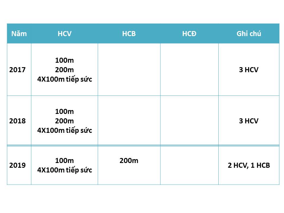 Tổng cộng trong 3 năm học tại trường THPT Nguyễn Trân, em đã đóng góp 8 HCV và 1 HCB, có thể nói em là một trong những học sinh tiêu biểu nhất của thể thao học đường tỉnh Bình Định. Ngoài ra, tại Đại hội Thể dục thể thao tỉnh Bình Định năm 2018 em còn đạt 1 HCB 200m và 1 HCĐ 4 X 100m.