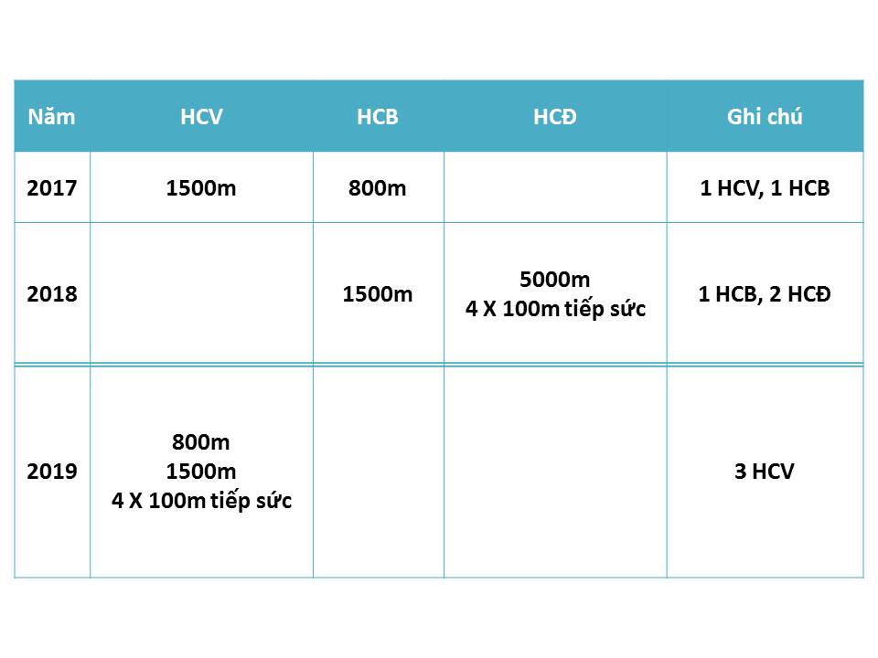 Trong 3 năm học tại trường THPT Nguyễn Trân, em đã đóng góp 4 HCV, 2 HCB và 2 HCĐ. Với sự nỗ lực không ngừng nghỉ đó, em xứng đáng được tuyên dương. Ngoài ra, tại Đại hội Thể dục thể thao tỉnh Bình Định năm 2018 em còn đạt 1 HCĐ 1500m và 1 HCĐ 7000m.
