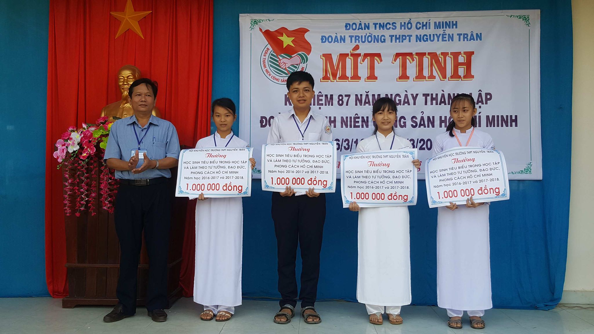 Cán bộ Huyện Đoàn tặng thưởng học sinh giỏi quốc gia 2018